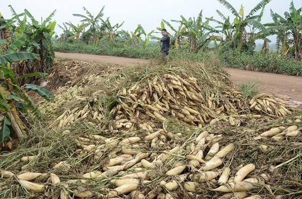 Thậm chí người dân còn phải thuê người dọn ruộng, mang củ cải đi vứt bỏ với mức giá 1 - 1,5 triệu đồng/sào. Nhiều gia đình cũng như thương lái cho biết, họ đã phải vứt bỏ hàng mẫu ruộng trồng củ cải trắng cũng như thua lỗ cả trăm triệu đồng.
