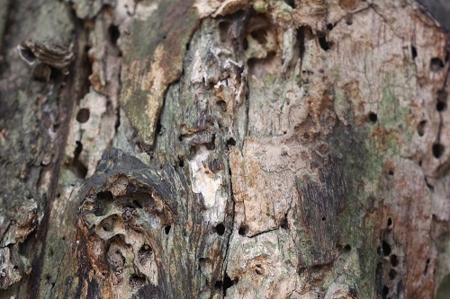 Thời điểm sau khi một nhánh chính của cây bị chặt, thân cây phía dưới không được xử lý tốt nên sâu bệnh phát triển khiến cây chết mòn. Trên mặt cắt có một lỗ rỗng sâu 1,4 m xuống tận gốc.