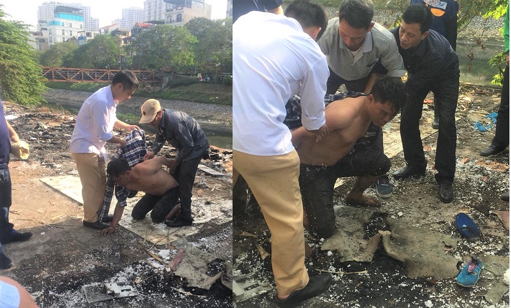Vào khoảng thời gian trên, người dân sinh sống gần khu vực sông Tô Lịch phát hiện một người đàn ông có biểu hiện "ngáo đá" đi đến đoạn đối diện số 512 đường Láng rồi nhảy xuống sông Tô Lịch. Ngay sau đó, một số người dân chèo thuyền ra sông để vớt nạn nhân lên bờ, đồng thời thông báo cho lực lượng chức năng.
