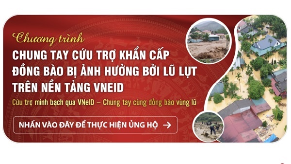 Ngày 13/9, với vai trò là đơn vị quản trị, vận hành Hệ thống Cơ sở dữ liệu quốc gia về dân cư, Hệ thống định danh và xác thực điện tử và sự đồng tình, ủng hộ của Mặt trật Tổ quốc Việt Nam, các đơn vị doanh nghiệp, tổ chức tài chính, Bộ Công an đã tổ chức “Chương trình chung tay cứu trợ khẩn cấp đồng bào bị ảnh hưởng bởi lũ lụt trên nền tảng VNeID và công bố nền tảng cứu trợ trên VNeID”.