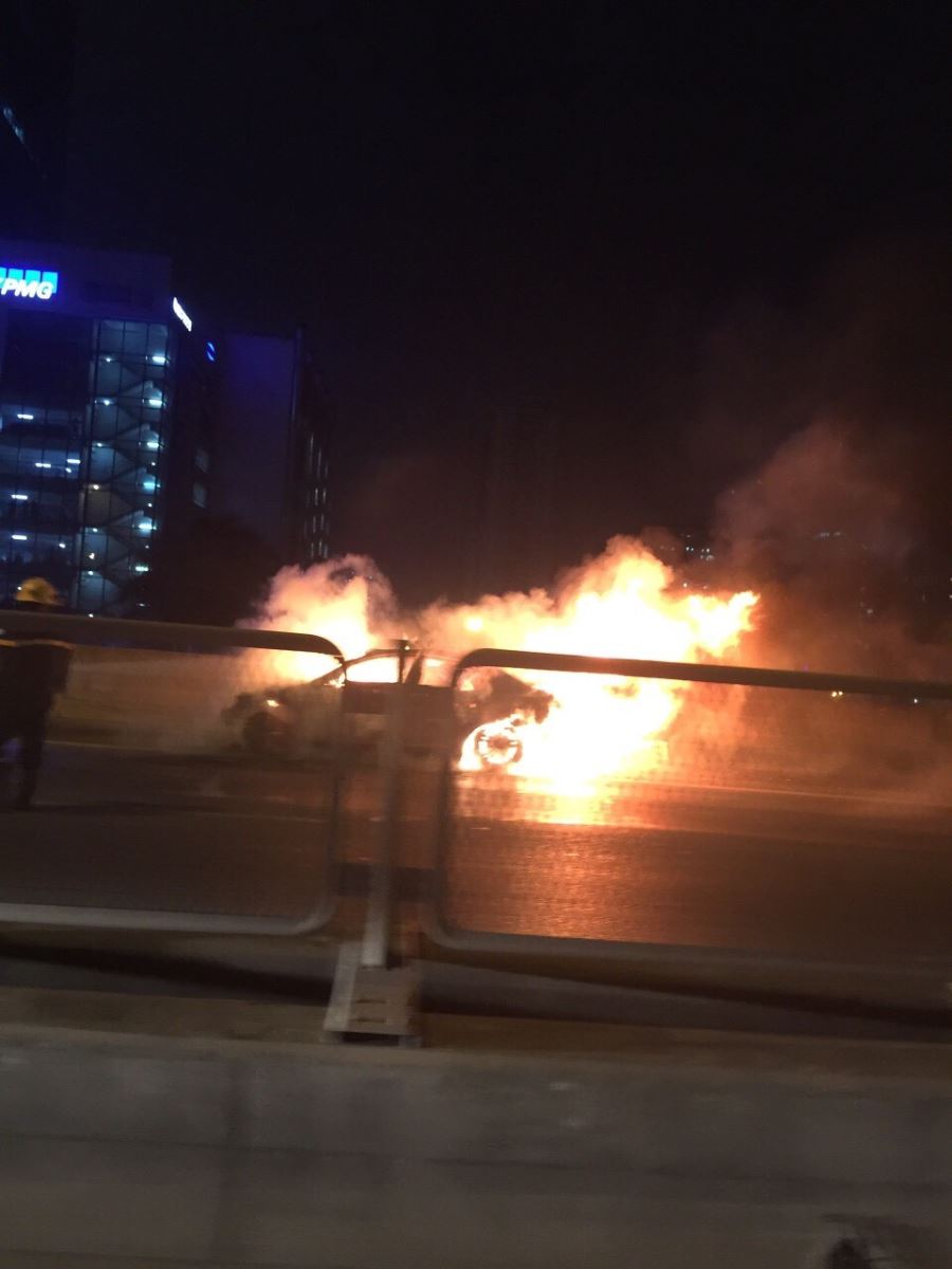 Theo thông tin ban đầu, khoảng 21h tối 30/10, chiếc xe ô tô 5 chỗ hiệu Mazda 3 đang chạy trên đường vành đai 3 (đoạn từ Keangnam hướng về cầu vượt Mai Dịch) bất ngờ bốc cháy dữ dội.