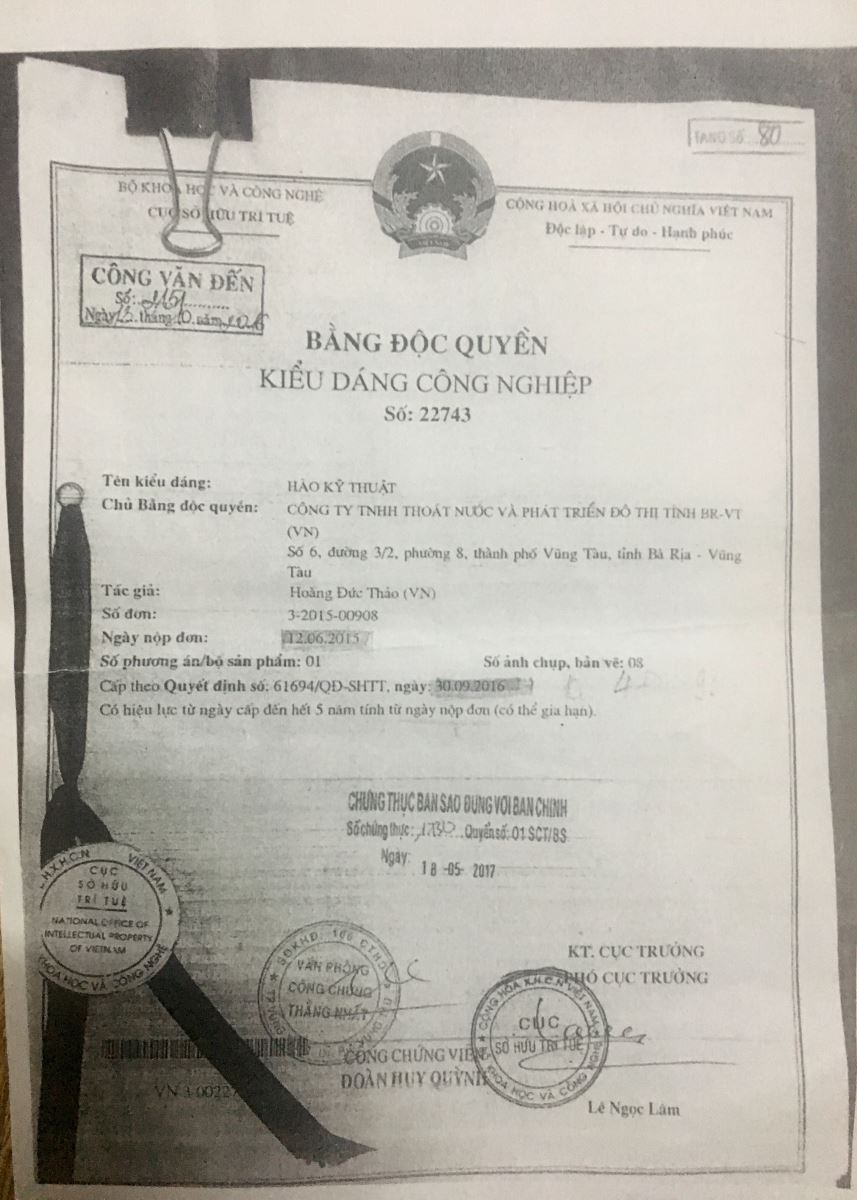 Ông Bùi Danh Biển, Giám đốc Công ty cổ phần xây dựng và thương mại Phượng Hoàng (Công ty Phượng Hoàng), thuộc phường Cẩm Thượng, TP. Hải Dương cho biết: Ngày 25/5/2017, Công ty TNHH Thoát nước và Phát triển đô thị tỉnh Bà Rịa – Vũng Tàu (Busadco) làm đơn gửi Thanh tra Sở Khoa học và Công nghệ Hải Dương yêu cầu xử lý vi phạm sở hữu công nghiệp đối với Công ty Phượng Hoàng, lý do: Công ty đã cho sản xuất sản phẩm “Kênh, mương đúc sẵn” trên quy mô công nghiệp cho dự án “Tăng cường quản lý thủy lợi và cải tạo các hệ thống thủy nông – Tiểu dự án: Đầu tư xây dựng khu tưới mẫu thí điểm Gia Bình” Ban quản lý tiểu dự án ADB5 Bắc Ninh – Sở Nông nghiệp và Phát triển nông thôn Bắc Ninh làm chủ đầu tư. Đây là việc làm vi phạm quyền Sở hữu trí tuệ của Busadco được Cục Sở hữu trí tuệ bảo hộ tại Bằng độc quyền kiểu dáng công nghiệp số 22743 “Hào kỹ thuật” tại Quyết định số 61694/QĐ-SHTT ngày 30/9/2016 của Cục Sở hữu trí tuệ - Bộ Khoa học và Công nghệ.
