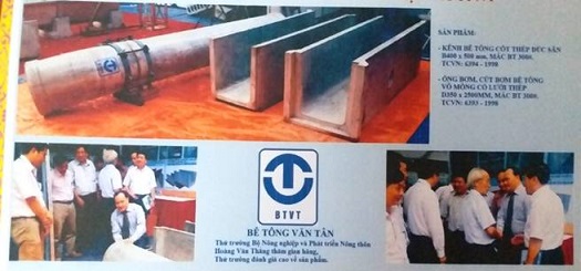 Tại Triển lãm giới thiệu sản phẩm công nghệ tiên tiến phục vụ tái cơ cấu ngành Nông nghiệp và Phát triển nông thôn diễn ra từ ngày 15 – 17/8/2014 tại Hà Nội, “Sản phẩm Kênh mương bê tông đúc sẵn thành mỏng” của Xí nghiệp cơ khí và xây dựng Văn Tân có thiết kế kiểu dáng tương tự cũng đã được trưng bày, đồng thời được Thứ trưởng Bộ Nông nghiệp và Phát triển nông thôn Hoàng Văn Thắng đánh giá cao về sản phẩm và cấp giấy chứng nhận sau đó.