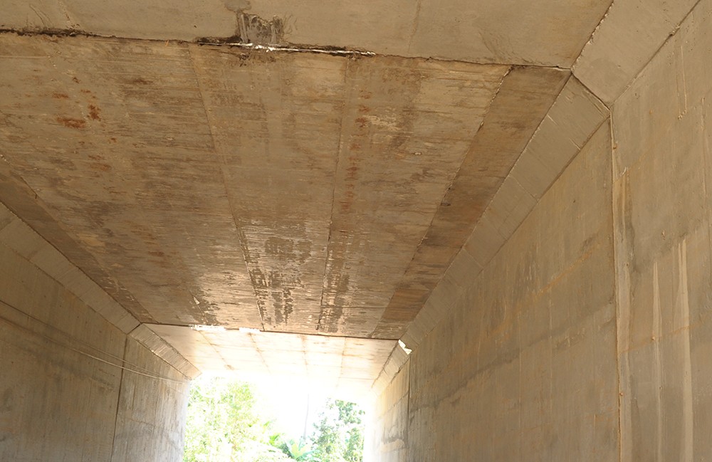 Chủ tịch UBND xã Tam Mỹ Tây Trần Văn Vũ, thông tin: Tại hầm chui này xuất hiện khe lún. Sau khi phản ánh việc hầm chui này bị thấm dột, chảy nước thì đơn vị thi công đã tiến hành sửa chữa. Việc dán băng keo của chủ đầu tư khiến nhiều người không khỏi thắc mắc, không biết việc dán băng keo này xử lý như thế nào và dán để làm gì?