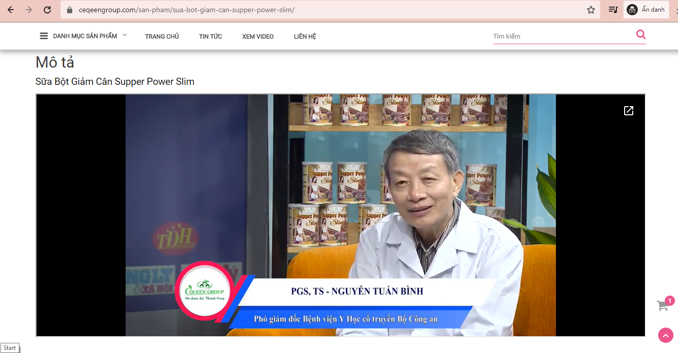 Ngoài ra, trên website này còn đăng tải gần 20 sản phẩm như bột giảm cân Supper Power Slim, sữa bột hồng sâm Ngọc linh nhụy hoa nghệ tây, sữa nghệ Nano Curcumin Q10, sữa bột linh chi đỏ, sữa bột Natto Enzym, siro trị ho Thiện Vương Phế, sữa bột Venus bygone plus gold …