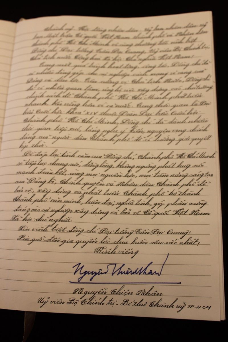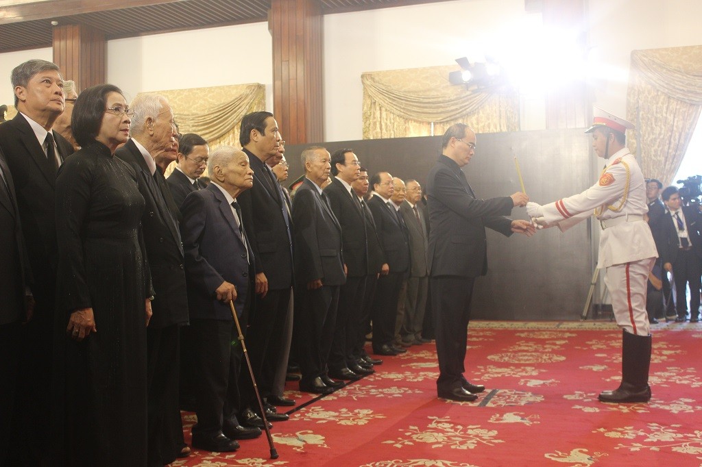 Ngoài lãnh đạo Đảng, Nhà nước tại TP.HCM, đoàn viếng còn gồm Văn phòng Chính Phủ tại phía Nam, bộ Công an phía Nam, bộ Y tế, lãnh đạo các tỉnh, thành phía Nam… cũng đến viếng Chủ tịch nước.