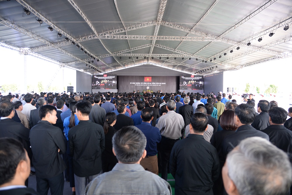 Đến 10h sáng, mặc dù thời tiết tại Ninh Bình hôm nay khá nắng nóng, nhưng lượng người đổ về nơi tổ chức lễ Quốc tang vẫn mỗi lúc một đông. Trên gương mặt của mỗi người dân khi đến đây họ đều tỏ rõ nỗi buồn, tưởng nhớ đến Chủ tịch nước Trần Đại Quang, người con ưu tú của quê hương Ninh Bình.