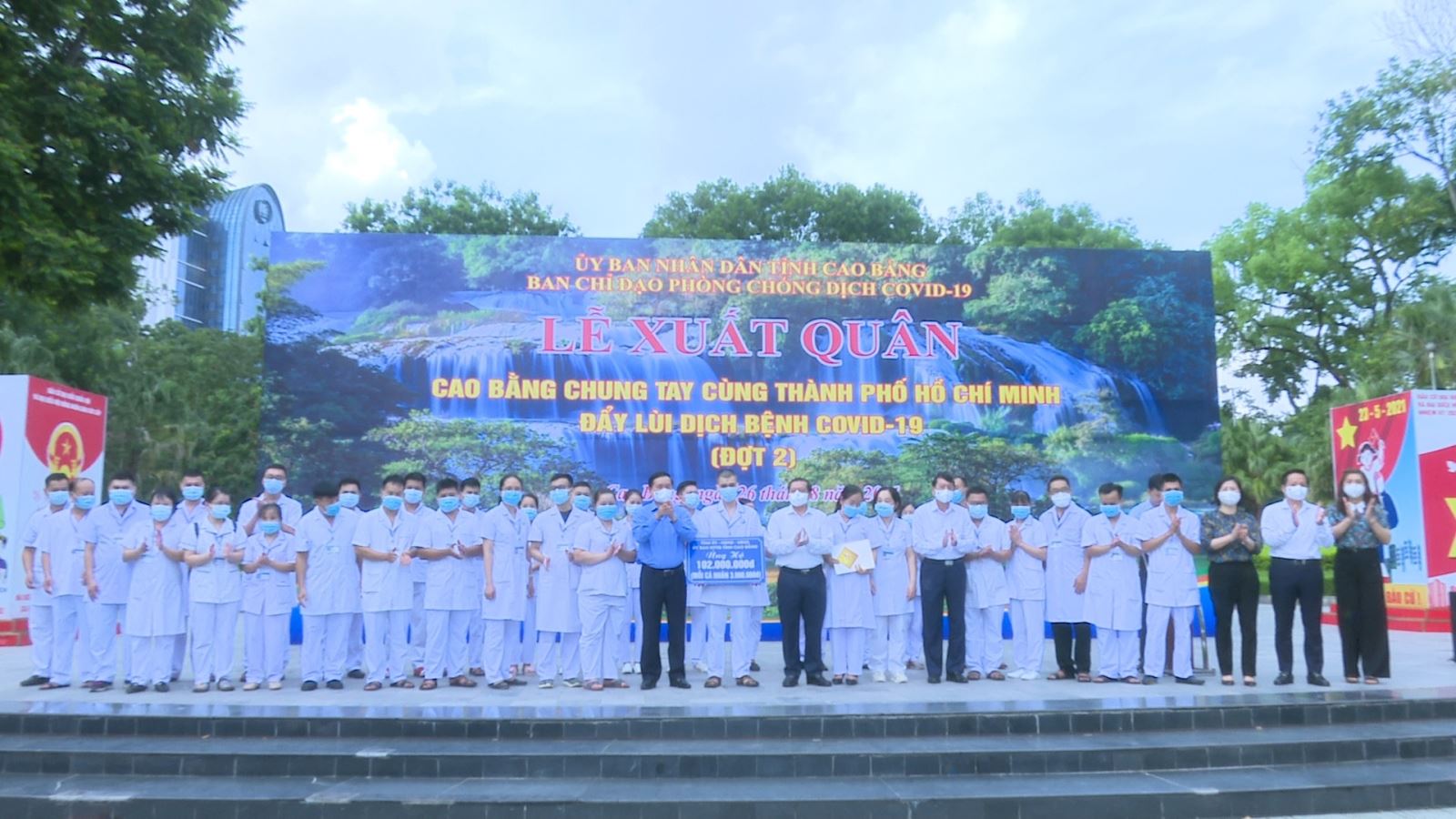Đoàn nhân lực y tế tỉnh Cao Bằng tham gia hỗ trợ phòng, chống dịch COVID-19 tại Thành phố Hồ Chí Minh (đợt 2) gồm 34 cán bộ y tế. Trong đó, có 13 bác sĩ, 04 y sĩ, 15 điều dưỡng, 01 dược sĩ, 01 kỹ thuật viên. Các tình nguyện viên đã được tập huấn các kỹ năng về kiểm soát nhiễm khuẩn, lấy mẫu xét nghiệm, cách sử dụng phương tiện phòng hộ cá nhân trong lấy mẫu; điều trị, chăm sóc người bệnh, nắm chắc các kiến thức về các biện pháp phòng chống dịch COVID-19.