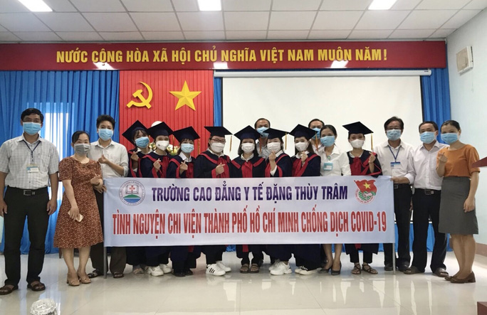 "Từ nguyện vọng các em, khi hoàn thành các chương trình đào tạo, sáng 26/8, nhà trường đã tổ chức lễ tốt nghiệp sớm hơn dự kiến cho các em. Ngay trong đêm 26/8, các em đã lên đường vào TPHCM", Hiệu trưởng Trường Cao đẳng Y tế Đặng Thùy Trâm cho biết.