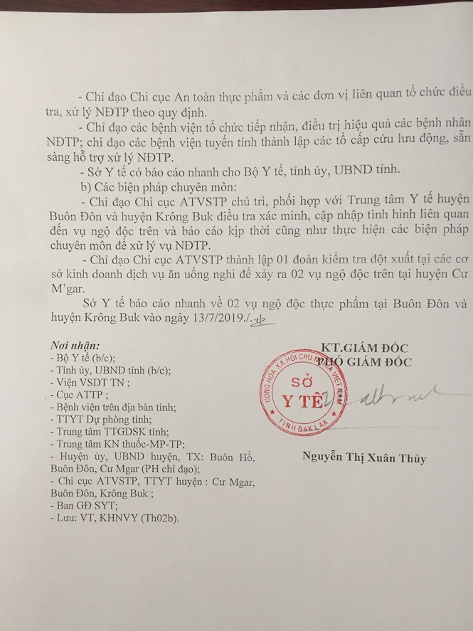 Tính đến trưa 14/7, đã có 146 người nhập viện tại các Bệnh viện Đa khoa thị xã Buôn Hồ, Bệnh viện Đa khoa Hòa Bình và Bệnh viện Thiện Hạnh cấp cứu và điều trị. Qua xác minh, cơ sở phục vụ tiệc cưới trên có địa chỉ tại thị trấn Ea Pốk, huyện Cư M’gar.