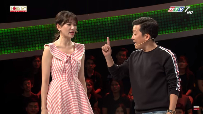 Trường Giang đã giải thích câu hỏi và nói luôn: "Do MC thôi!". Hari Won nghe vậy phải thanh minh lập tức: "Gì nữa anh? Nhiệm vụ của em là như thế mà? Em kiếm cơm đó anh!".