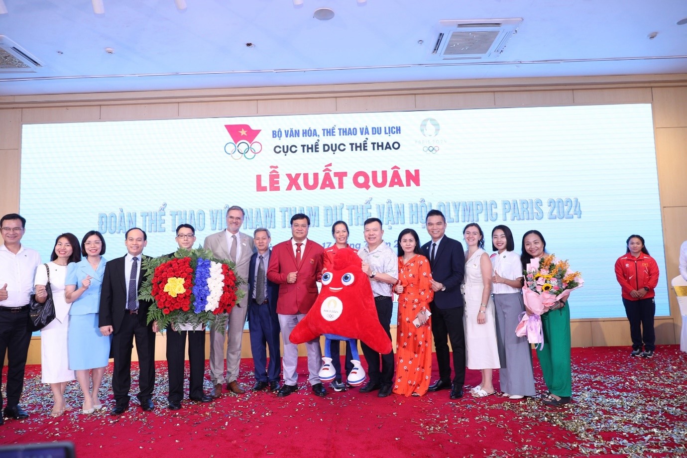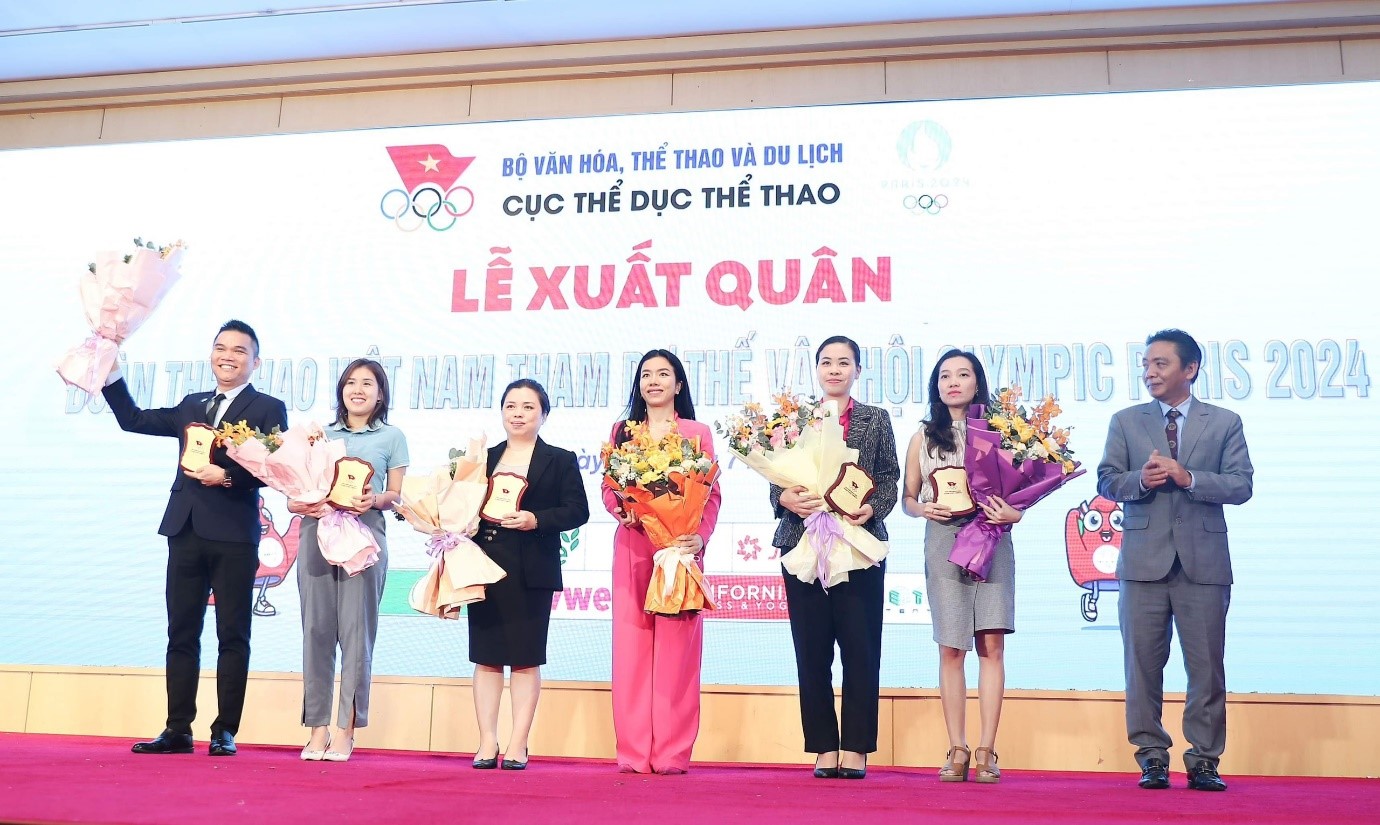 Đoàn Thể thao Việt Nam gồm 39 thành viên, trong đó có 16 vận động viên (thuộc 11 môn thể thao), 16 huấn luyện viên và chuyên gia cùng 2 bác sĩ, các cán bộ đoàn, do ông Đặng Hà Việt, Cục trưởng Cục Thể dục thể thao làm Trưởng đoàn sẽ lên đường tham dự Olympic Paris.