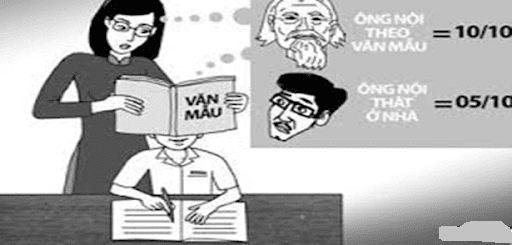 Thậm chí, đâu đó, vẫn có những trường hợp khi học sinh làm bài theo cảm xúc, thể hiện góc nhìn riêng thì lại phải nhận về một điểm số thấp đính kèm với lời phê kiểu “không đúng mẫu”. Chẳng hạn, mạng xã hội vẫn thường lan truyền câu chuyện vui về bài văn của một học sinh tiểu học tả bà ngoại U60 nhưng tóc vẫn đen và từ “gu” thời trang đến lối sống đều rất “mô-đen”... rồi bị giáo viên phê là bà ngoại thì tóc phải bạc, lưng phải còng, nhai trầu bỏm bẻm.