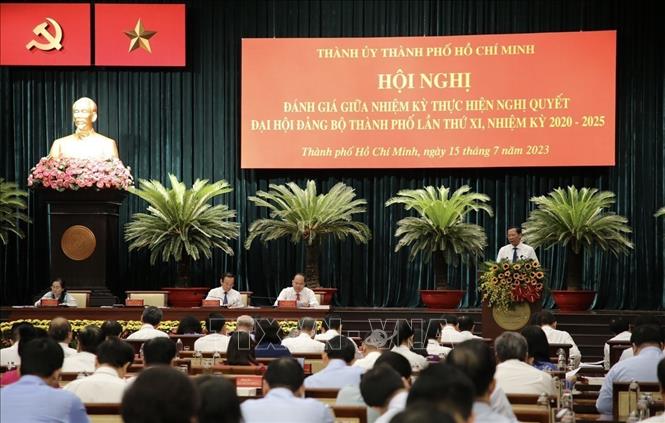 Phát biểu tại hội nghị, thay mặt Bộ Chính trị, Ban Bí thư, đồng chí Trương Thị Mai, Ủy viên Bộ Chính trị, Thường trực Ban Bí thư, Trưởng Ban Tổ chức Trung ương ghi nhận, đánh giá cao những thành tựu, kết quả nổi bật của Thành phố Hồ Chí Minh từ đầu nhiệm kỳ đến nay và tin tưởng trong thời gian còn lại của nhiệm kỳ, Đảng bộ, chính quyền, nhân dân Thành phố sẽ tiếp tục phát huy truyền thống, kết quả đạt được, đoàn kết, nhất trí chung sức, chung lòng, quyết tâm, nỗ lực xây dựng Thành phố trở thành Thành phố văn minh, hiện đại, nghĩa tình, năng động, sáng tạo, có vị thế nổi trội trong khu vực Đông Nam Á, kinh tế tiếp tục tăng trưởng, đời sống nhân dân mỗi một ngày một nâng cao.