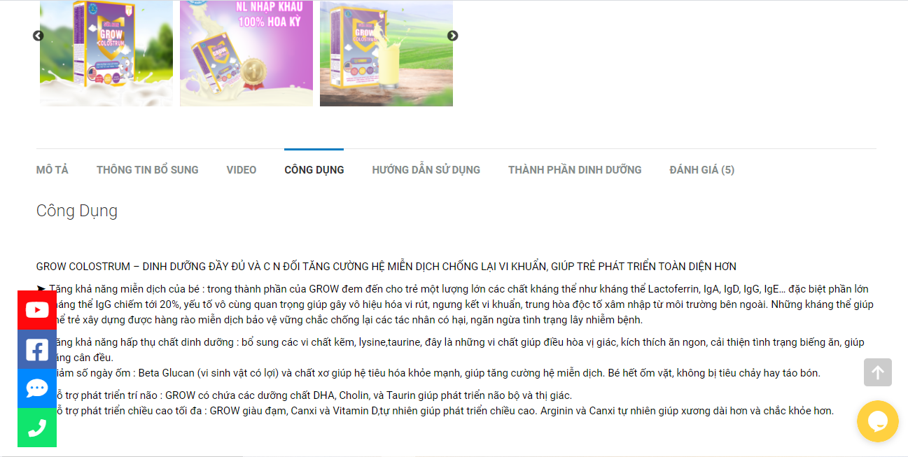 Thế nhưng, theo quảng cáo trên website suanongrow.com, sản phẩm sữa non Grow Colostrum có rất nhiều tác dụng như chống lại vi khuẩn, gây vô hiệu hóa virus, ngưng kết vi khuẩn, trung hòa độc tố xâm nhập từ môi trường bên ngoài, chống lại các tác nhân có hại, ngăn ngừa tình trạng lây nhiễm bệnh. Bé hết ốm vặt, không bị tiêu chảy hay táo bón…