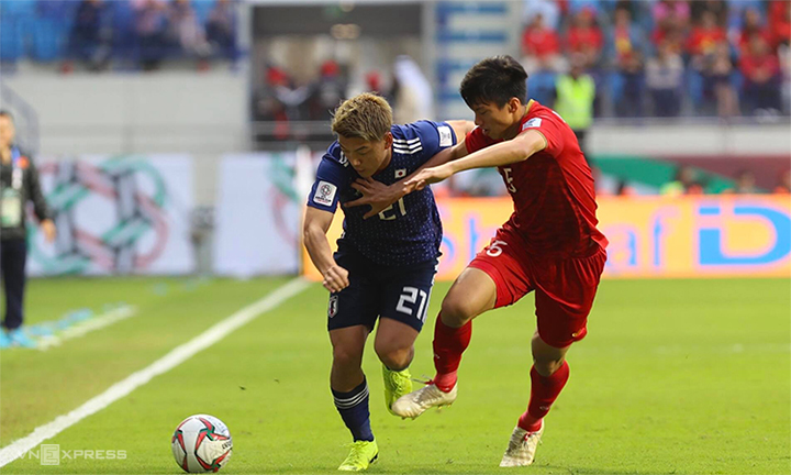 Nhật Bản vẫn giữ cách tiếp cận trận đấu theo cách thận trọng, và vì thế, có phần bị tuyển Việt Nam lấn lướt trong thời gian đầu trận. Một số tình huống có thể ăn bàn được đội bóng áo đỏ tạo ra, nhưng lần lượt Công Phượng, Văn Đức, Quang Hải, Văn Toàn đều dứt điểm không thành. Nhật Bản chỉ có một cơ hội thật sự nguy hiểm trong hiệp một và đã làm tung lưới Việt Nam. Dù vậy, trọng tài từ chối công nhận bàn thắng cho thầy trò Moriyasu sau khi tham khảo VAR và xác định trung vệ Yoshida để bóng chạm tay.