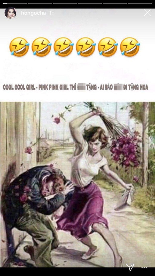 Thay vì khoe quà, hoa, ngày 20/10 "Nữ hoàng giải trí" Hồ Ngọc Hà lại đăng tải bức hình với nội dung một người phụ nữ đang dùng bó hoa để đánh một người đàn ông lên Instagram. Sự việc sẽ chẳng có gì nếu như bức này không được đính kèm một dòng chữ có nội dung khá dung tục, phản cảm.