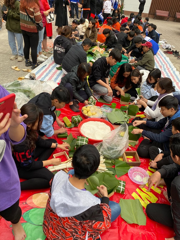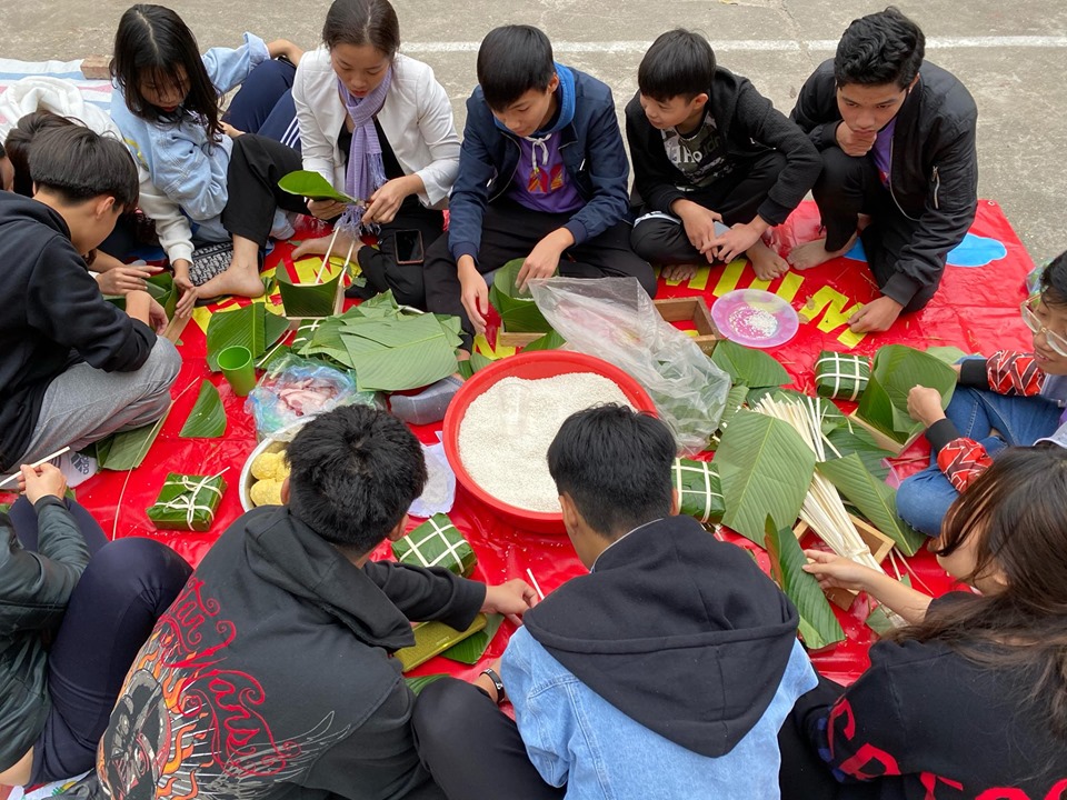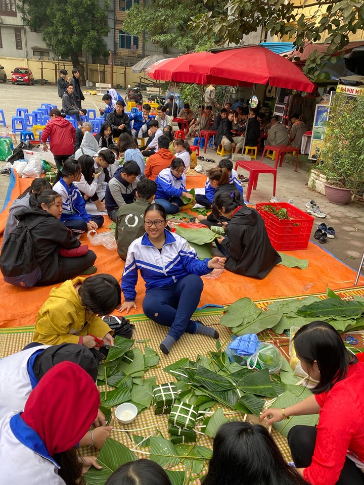 Một trong những hoạt động trải nghiệm được thầy trò vui mừng, hân hoan nhất trong năm là lễ hội Trải nghiệm gói Bánh chưng được diễn ra hàng năm vào ngày 21/12 âm lịch.