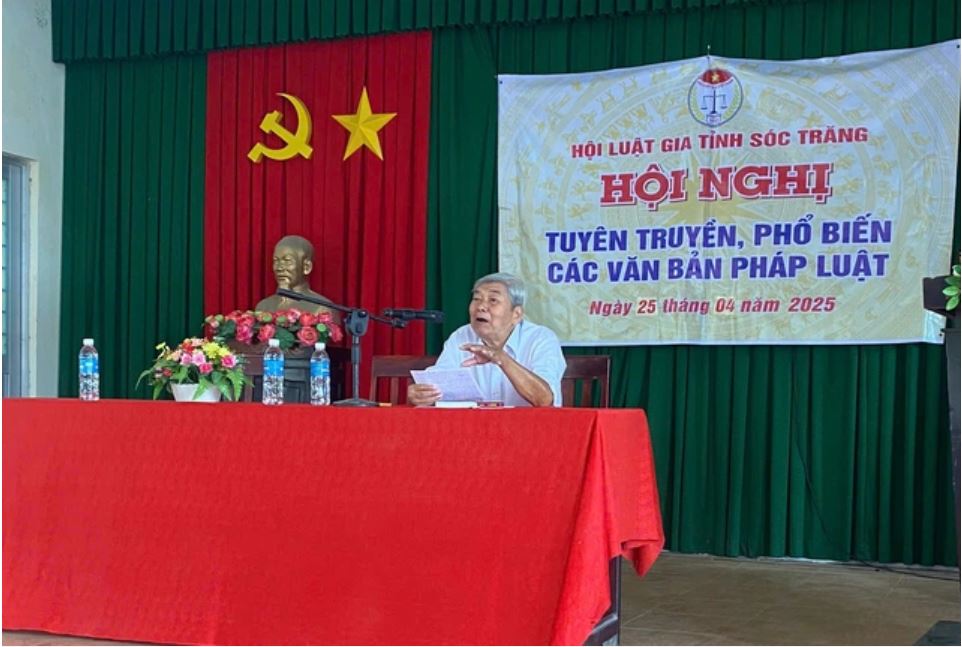 Trước đó, từ đầu đến giữa tháng 4/2025, Hội Luật gia tỉnh Sóc Trưng đã tập trung tuyên truyền các luật, văn bản mới có hiệu lực pháp luật, có tác động lớn đến xã hội; các văn bản, quy định có liên quan đến sản xuất, kinh doanh, đặc biệt là trong các lĩnh vực đất đai, môi trường, xây dựng nông thôn mới, an toàn giao thông, trật tự an toàn xã hội.