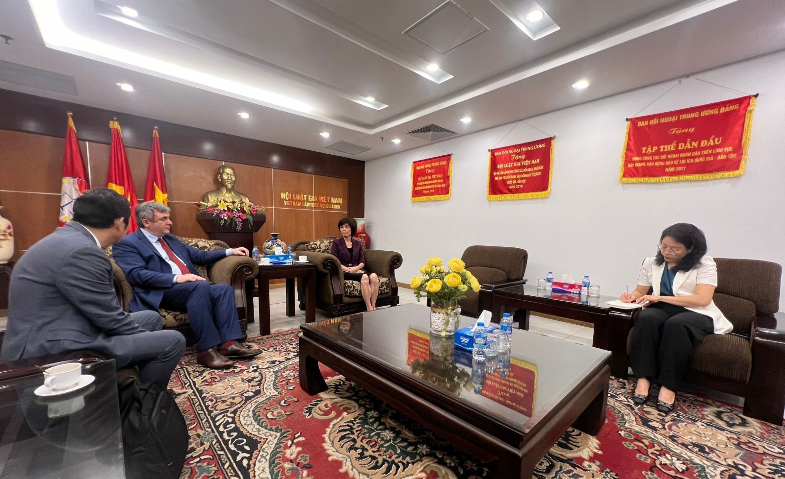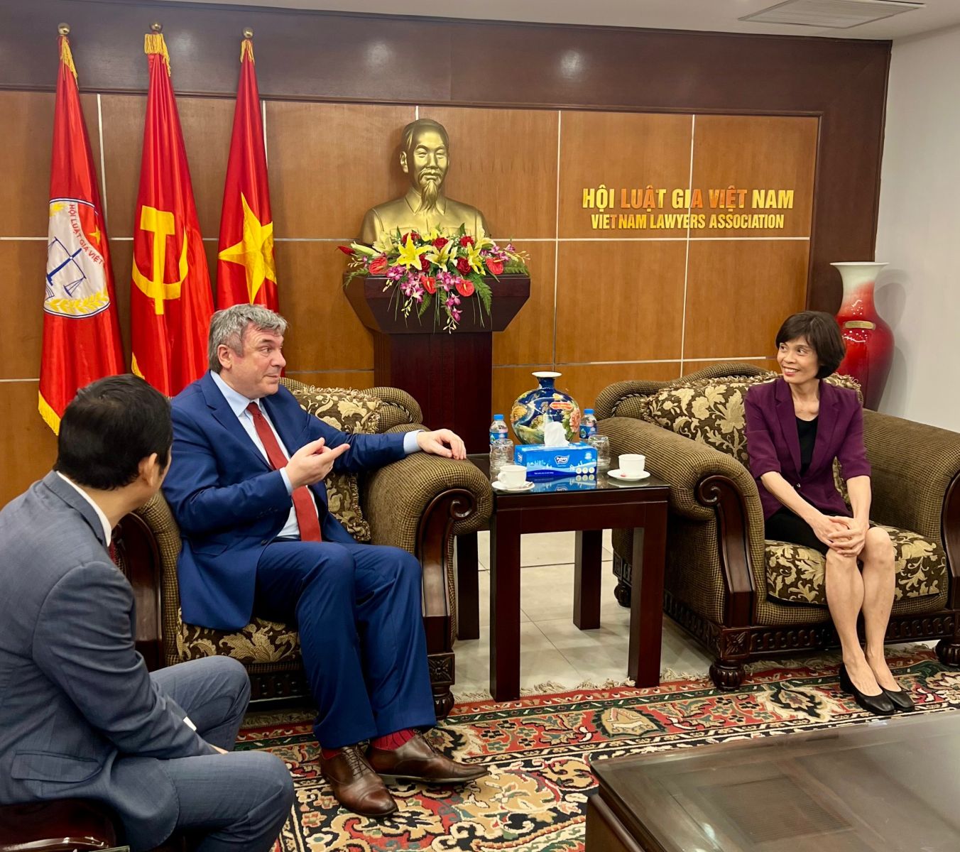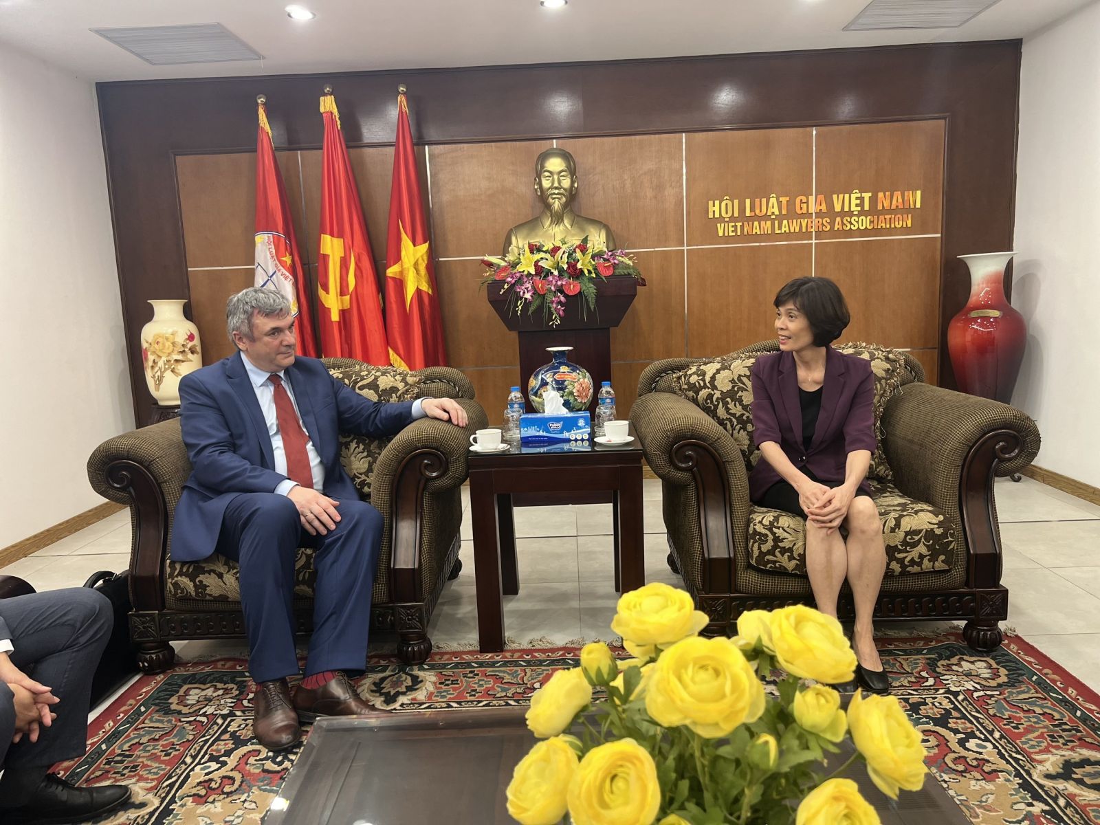 Tại buổi tiếp, Phó Chủ tịch Hội Luật gia Việt Nam Lê Thị Kim Thanh bày tỏ sự vui mừng được gặp lại Phó Chủ tịch Ủy ban Đối ngoại thành phố Saint Petersburg, Liên bang Nga Kalganov Vyacheslav Gennadievich sau gần một năm Thỏa thuận hợp tác giữa Ủy ban Đối ngoại thành phố Saint Petersburg và Hội Luật gia Việt Nam được ký kết vào tháng 6/2023.