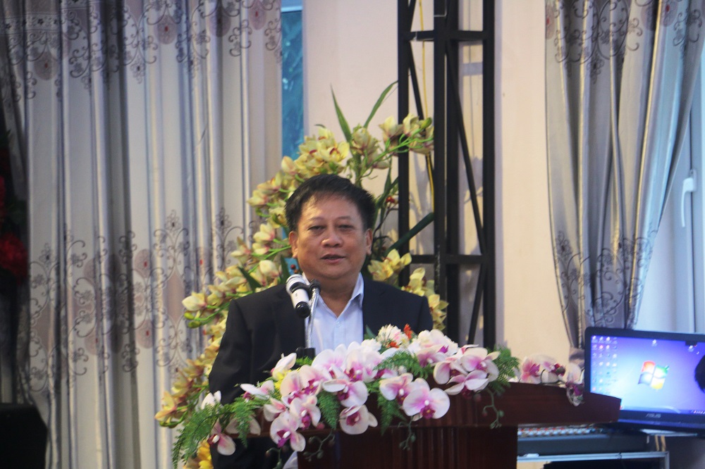Ông Dương Đình Khuyến, Trưởng ban tư vấn pháp luật và trợ giúp pháp lý, hội Luật gia Việt Nam thay mặt Trung ương hội trình bày báo cáo sơ kết Công tác trợ giúp pháp lý của hội Luật gia các cấp sau 2 năm thực hiện luật Trợ giúp pháp lý năm 2017.