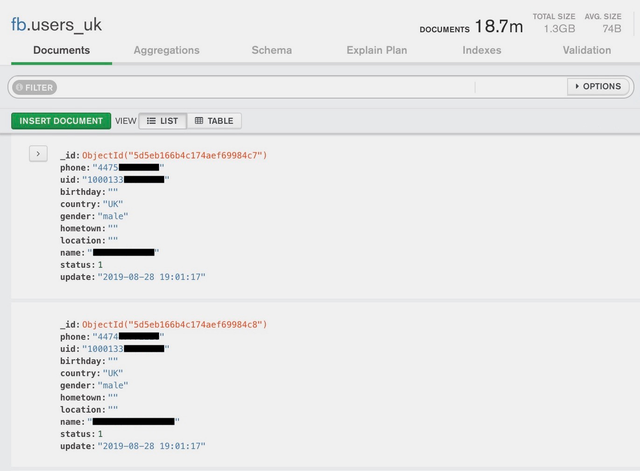 Theo Techcrunch vừa đưa tin cho biết máy chủ bị lộ của Facebook chứa hơn 419 triệu hồ sơ cơ sở dữ liệu về người dùng trên thế giới, với 133 bản ghi ở Mỹ, 18 triệu bản ghi ở Anh và 50 triệu bản ghi ở Việt Nam. Trong đó, mỗi bản ghi chứa một ID người dùng Facebook duy nhất và số điện thoại được liệt kê trên tài khoản.
