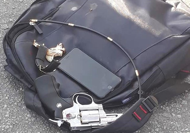 Tại hiện trường, hai ôtô tông ép sát vào nhau, có nhiều mảnh vỡ vương vãi khắp mặt đường. Công an thu giữ một khẩu súng cùng nhiều tang vật liên quan.