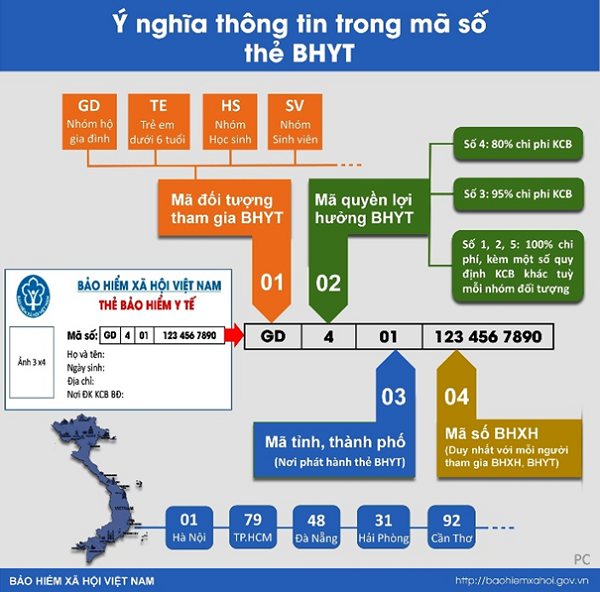 Mã số BHXH là 10 kí tự cuối của mã thẻ BHYT, cụ thể như hình sau: