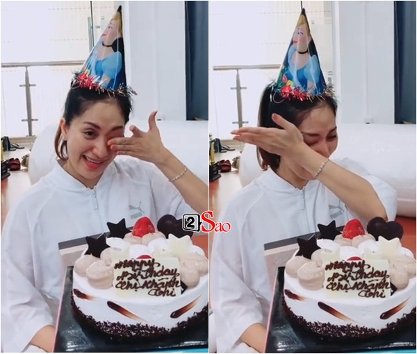 Bất ngờ trở thành nhân vật chính trong ngày, Khánh Thi không khỏi xúc động. Nước mắt rơi lã chã trên gương mặt bà mẹ hai con vì quá hạnh phúc.