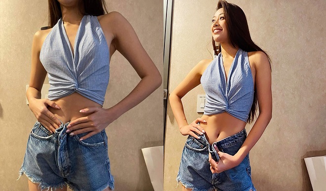 Theo đại diện của Khánh Vân chia sẻ, sau hơn 1 tháng ở Mỹ, Khánh Vân sụt khoản 5-6kg, quần đã không mặc vừa vặn vì quá gầy.