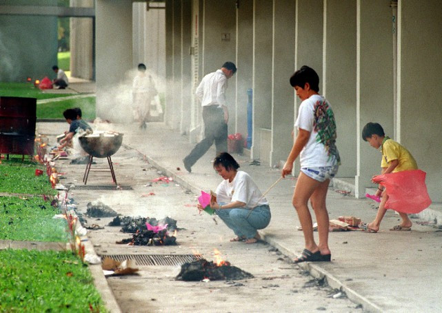 Singapore kỷ niệm lễ Vu Lan hàng năm bằng các hoạt động thờ cúng tổ tiên và đốt vàng mã. Khi ăn cơm, họ đặt hình nhân của Diêm Vương ở giữa bàn ăn. Thức ăn được đặt mọi nơi trong nhà từ sáng đến đêm.