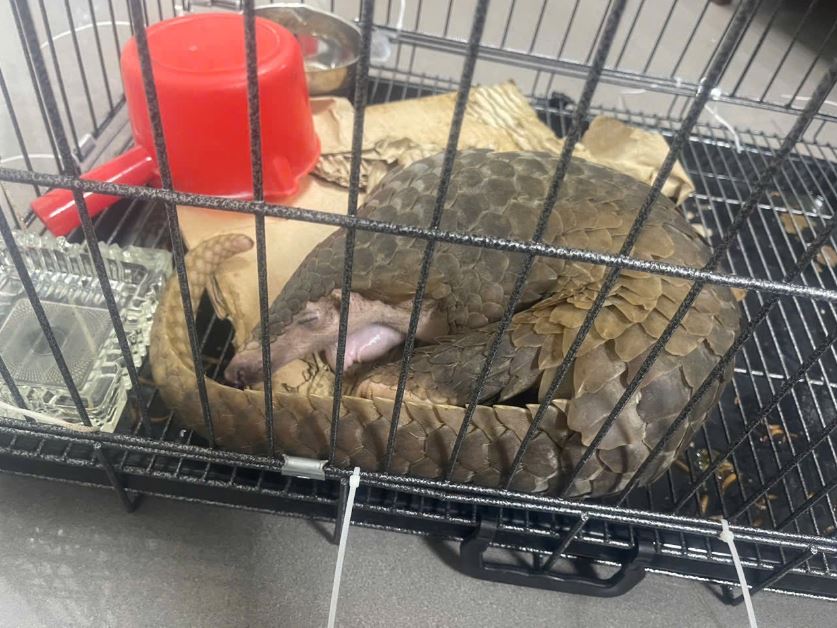 Tổ công tác kiểm tra phát hiện trên xe ô tô 30M-7129 đang vận chuyển 1 cá thể Tê tê Java còn sống thuộc danh mục động vật nguy cấp, quý, hiếm được ưu tiên bảo vệ được đựng trong 1 thùng xốp màu trắng để trong cốp xe.