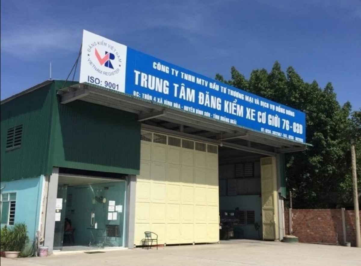 Trung tâm Đăng kiểm xe cơ giới 76-03D thuộc Công ty TNHH MTV Đầu tư Thương mại và Dịch vụ Đồng Hưng, có địa chỉ tại xã Bình Hòa, huyện Bình Sơn, tỉnh Quảng Ngãi.