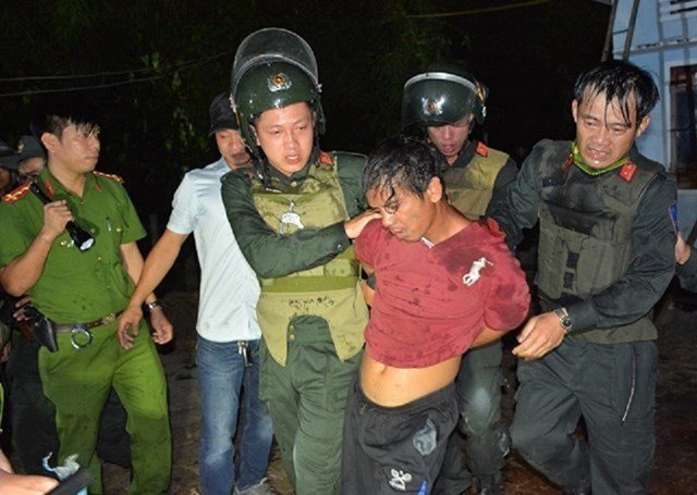 Sau khi gây án, nghi phạm cầm 2 cây dao cố thủ trong nhà. Cảnh sát cơ động Công an tỉnh Quảng Nam leo nóc nhà, sử dụng hơi cay cùng nhiều phương thức để tiếp cận, khống chế Xanh.