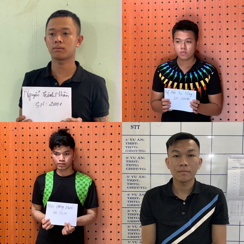 Theo đó, 4 đối tượng bị khởi tố, tạm giam gồm: Nguyễn Thành Nhân, Mai Hoàng Phước (cùng 21 tuổi, ngụ phường Phú Lợi, thành phố Thủ Dầu Một), Nguyễn Đức Trí Dũng (ngụ phường Hiệp Thành, thành phố Thủ Dầu Một) và Nguyễn Minh Dũng (cùng 22 tuổi, ngụ phường Chánh Mỹ, thành phố Thủ Dầu Một).