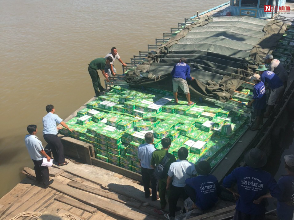 Khi kiểm tra, hàng hóa phát hiện gồm: Trên 17.345 thùng nước giải khát có ga, xuất xứ Campuchia; trên 29.630 thùng nước tăng lực hiệu RedBull, xuất xứ Thái Lan. Ngoài số hàng hóa trên, cơ quan Hải quan còn phát hiện và thu giữ 14 tấm decal nhãn phụ (1.653 nhãn phụ) của Công ty TNHH MTV SX TMDV Minh Tiến; 26 tấm decal (2.787 nhãn) phụ của Công ty TNHH một thành viên Xuất nhập khẩu Thương mại Dịch vụ Toàn Cầu. Toàn bộ số hàng hóa trên được vận chuyển trên 3 ghe từ Campuchia về Việt Nam qua cửa khẩu Khánh Bình thuộc huyện An Phú, tỉnh An Giang ngày 9/11/2019.