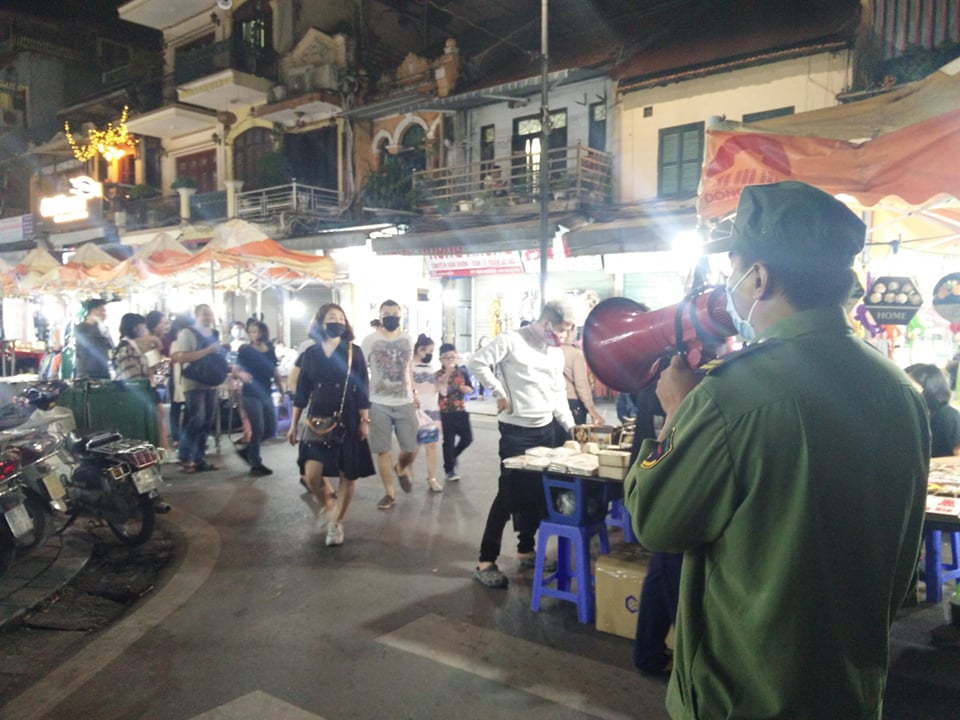 Thượng tá Bùi Văn Đang, Phó Trưởng Công an quận Hoàn Kiếm cho biết, lực lượng chức năng cương quyết đề nghị những người không đeo khẩu trang không được vào khu vực phố đi bộ hồ Hoàn Kiếm. Tại những điểm chốt đều bố trí xe chuyên dụng và hệ thống loa tuyên truyền ở vị trí thuân tiện để người dân được biết. Ngoài ra, các trường hợp mang chó cảnh đi dạo không rọ mõm cũng không được tham gia không gian phố đi bộ.