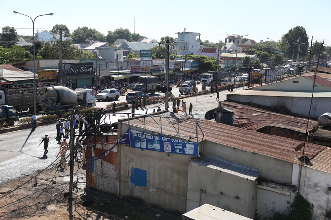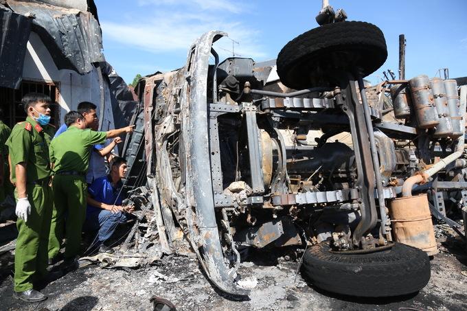 Sau khi tông xe ba gác, xe bồn tông gãy cột điện rồi lật ngang. 10 khối dầu, 4 khối xăng trên xe bồn chảy tràn ra quốc lộ gây ra vụ hỏa hoạn kinh hoàng. Tại hiện trường, xe bồn bị cháy rụi, nằm cạnh căn nhà có 4 nạn nhân tử vong.