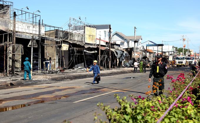 Dãy phố kéo dài chừng 100 m bị cháy rụi phần trước. Các căn nhà này nằm gần Khu công nghiệp Minh Hưng, phần lớn đều là cửa hàng buôn bán sầm uất. Sau vụ cháy, tất cả tài sản đều bị thiêu rụi.