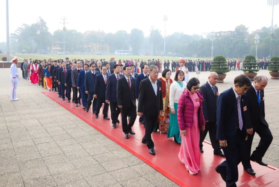 Tiếp đó, đoàn đã đặt vòng hoa và vào lăng viếng Chủ tịch Hồ Chí Minh, các đại biểu dự Đại hội đại biểu toàn quốc Hội Luật gia Việt Nam lần thứ XIV bày tỏ lòng thành kính, tưởng nhớ công lao to lớn của Chủ tịch Hồ Chí Minh đối với sự nghiệp cách mạng của Đảng, của dân tộc.