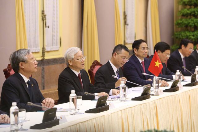 Sau khi làm lễ chào cờ và duyệt đội danh dự, lãnh đạo hai nước giới thiệu và bắt tay các quan chức tháp tùng rồi cùng tiến vào phòng hội đàm. Chủ tịch Triều Tiên dự kiến gặp Thủ tướng Nguyễn Xuân Phúc và Chủ tịch Quốc hội Nguyễn Thị Kim Ngân sau cuộc hội đàm.