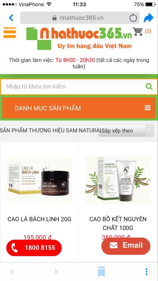 Được biết, trên website nhathuoc356.vn rất nhiều sản phẩm của thương hiệu Sam Natural được quảng cáo, giới thiệu bán trên trang như : Cao lá Bắc Linh, Thảo mộc Cổ truyền, Dung dịch vệ sinh phụ nữ, Nước gừng nguyên chất, Tinh dầu tràm Huế...