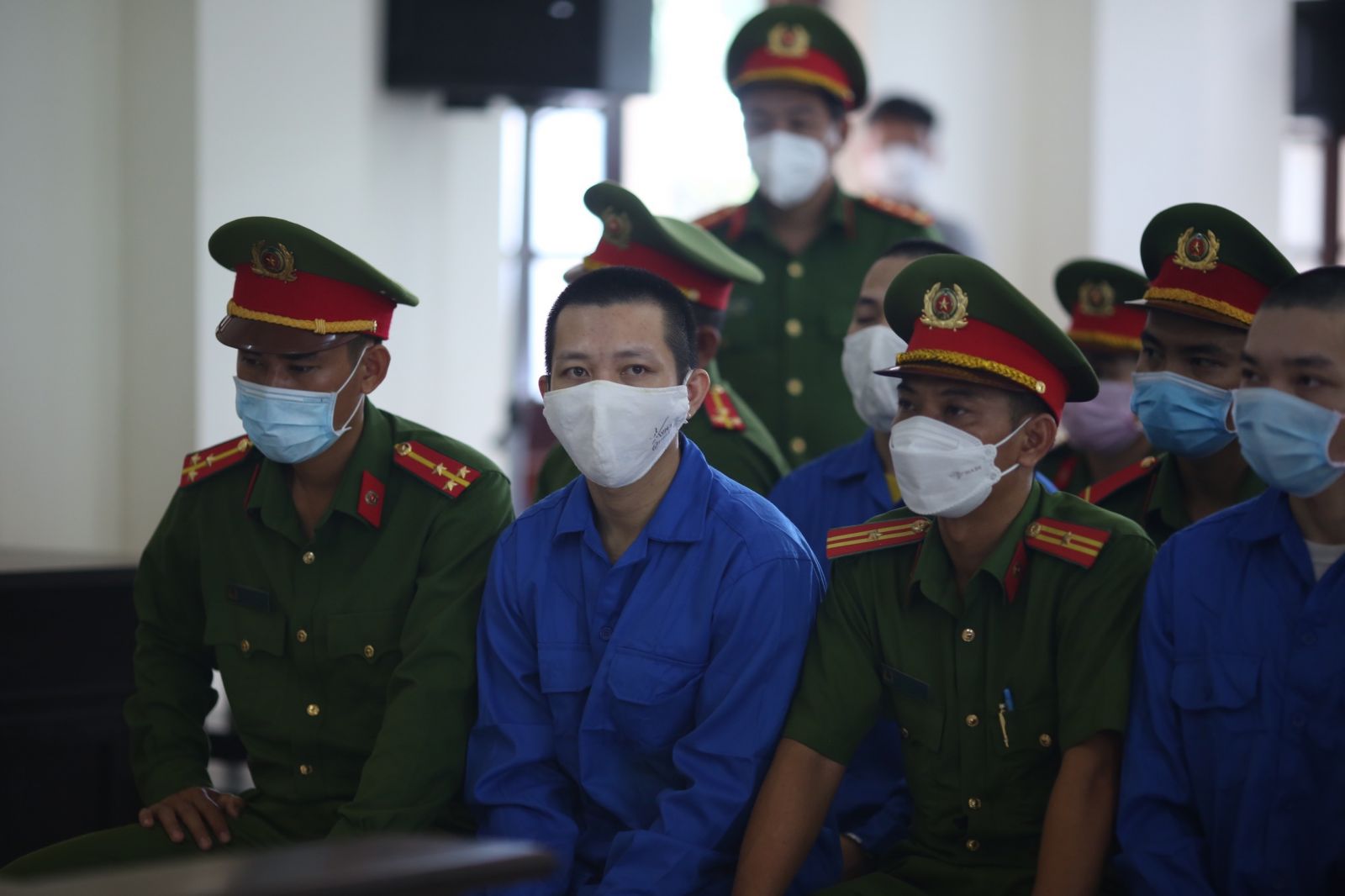 Đúng 8h30, HĐXX bắt đầu làm việc, các phóng viên, nhà báo được bố trí phòng bên cạnh để tác nghiệp qua màn hình.