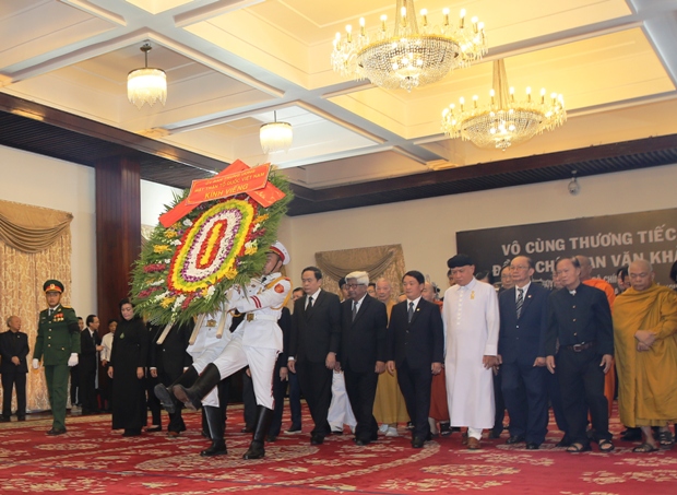 Tiếp đó, Đoàn đại biểu Ban Chấp hành Trung ương Đảng; Đoàn Chủ tịch nước; Đoàn Chính phủ; Đoàn Quốc hội; Ủy ban Trung ương MTTQ Việt Nam; Văn phòng Chính phủ; Thành ủy, HĐND, UBND, Ủy ban MTTQ Việt Nam Thành phố Hồ Chí Minh và nhiều đoàn đại biểu của các cơ quan, ban ngành, tổ chức, đoàn thể của Trung ương, các địa phương trong nước và bạn bè quốc tế đã đến đặt vòng hoa kính viếng, bày tỏ lòng tiếc thương vô hạn đối với đồng chí Phan Văn Khải, người chiến sĩ Cộng sản trung kiên, người lãnh đạo tài năng, tiêu biểu, có nhiều đóng góp cho sự nghiệp cách mạng của Đảng và Nhà nước, được nhân dân trong nước và thế giới kính trọng.