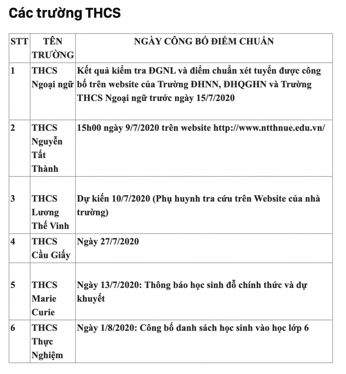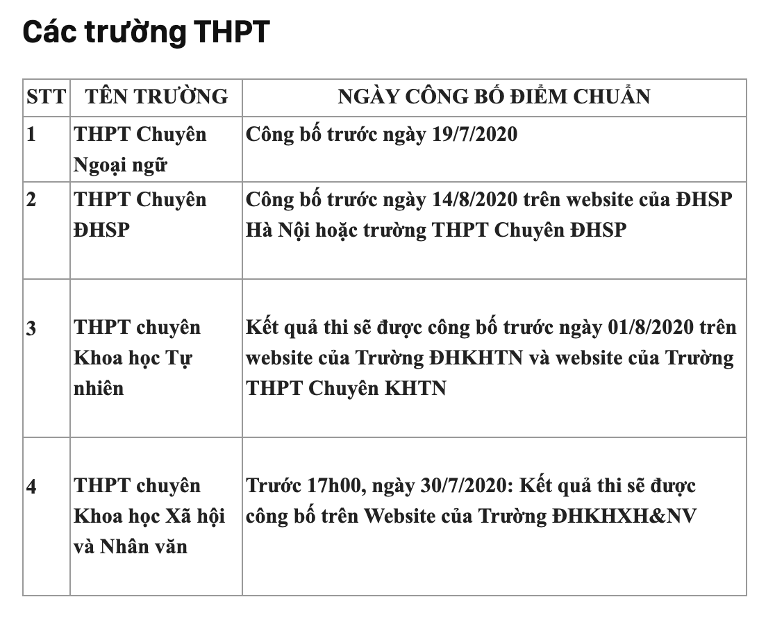Dưới đây là ngày công bố điểm chuẩn chính thức và cả dự kiến của một số trường THCS hot và THPT chuyên tại Hà Nội, phụ huynh và học sinh cần nắm rõ.