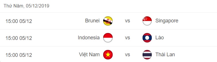 Trân trọng gửi tới quý độc giả Lịch thi đấu bóng đá nam SEA Games 30 ngày thứ Năm 05/12/2019 thuộc lượt trận cuối cùng của bảng B.