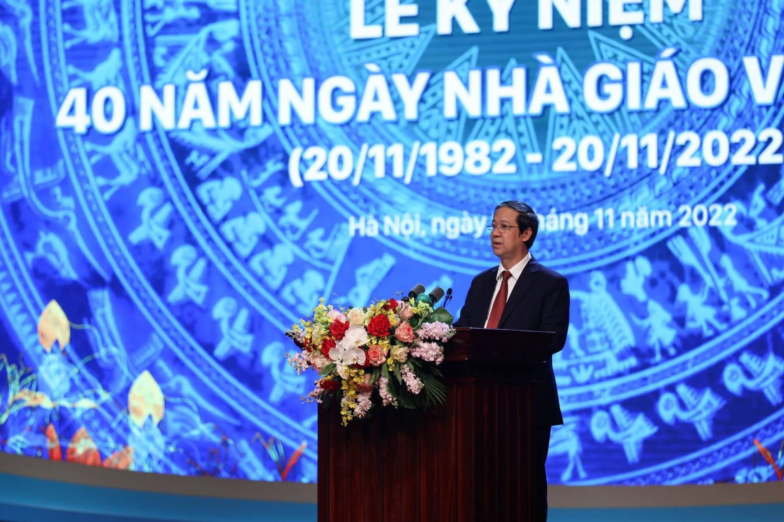 Đại diện cho ngàng giáo dục nước nhà, phát biểu tại buổi lễ, Bộ trưởng Bộ GD&ĐT Nguyễn Kim Sơn bày tỏ: “Nhà giáo là một nghề cao quý. Nhưng bởi vì lẽ gì mà nhà giáo lại được xem là một nghề cao quý? Trong những thứ quý giá, con người là thứ quý nhất, là hoa của trời đất, là tinh anh của vạn vật, vì vậy, nghề chăm lo phát triển con người là công việc khó nhất và là công việc cao quý nhất”.
