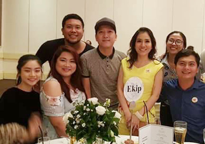 Tối 12/4, Trường Giang đã thu hút khá nhiều sự chú ý khi xuất hiện tại buổi tiệc tri ân đoàn phim Siêu sao siêu ngố do anh đóng chính. Giữa hàng loạt ồn ào về chuyện đời tư, chàng hề xứ Quảng đội mũ, đeo khẩu trang che kín mặt để tránh sự chú ý của mọi người. Mãi đến khi ngồi vào bàn tiệc, anh mới cởi khẩu trang, nở nụ cười giao lưu cùng mọi người trong đoàn.