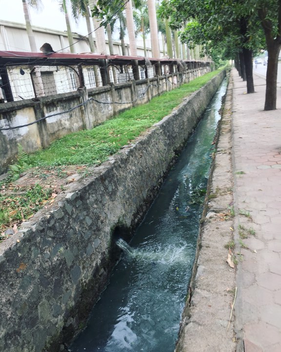Men theo dòng nước của con mương cùng với sự chỉ dẫn của người dân, PV thấy nước thải xuất phát một ống cống chảy ra từ nhà máy của công ty Vit Garment. Ghi nhận bằng mắt thường cũng có thể nhận thấy nước thải từ công ty Vit Garment chảy ra và đổi màu liên tục, lúc màu xanh, lúc đen, lúc trong và bốc mùi hôi tanh nồng nặc. Nhìn vào con mương, PV dễ dàng nhận thấy màu xanh và tím đen bám đọng thành từng mảng lớn dưới đáy mương. Đặc biệt, chỉ đứng quan sát một lúc PV đã cảm thấy da mặt ngứa ngáy, da tay thô ráp cùng trạng thái buồn nôn, khó thở...