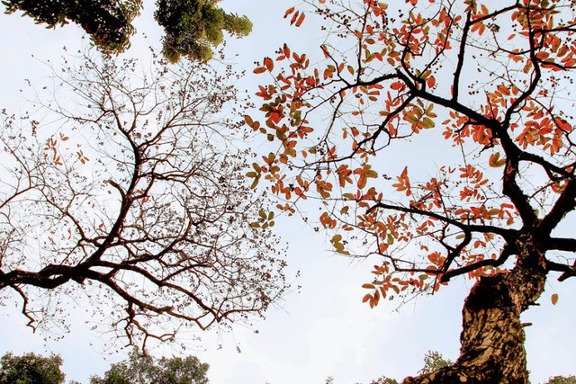 Đi trên những con đường đang mùa cây thay lá bỗng cảm giác lòng bình yên và thư thái trước những xô bồ, ồn ào của phố thị